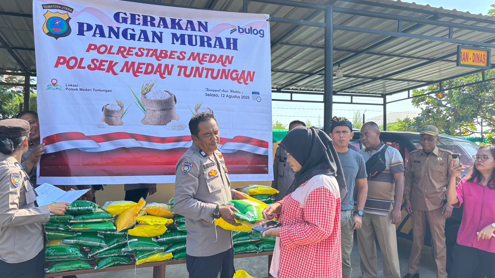 Sebanyak 200 karung beras ukuran 5 kilogram atau setara 1 ton dijual kepada masyarakat Kecamatan Medan Tuntungan dengan harga terjangkau, yakni Rp50.000 per karung. Antusiasme warga terlihat tinggi, dan seluruh stok beras habis terjual dalam waktu singkat.