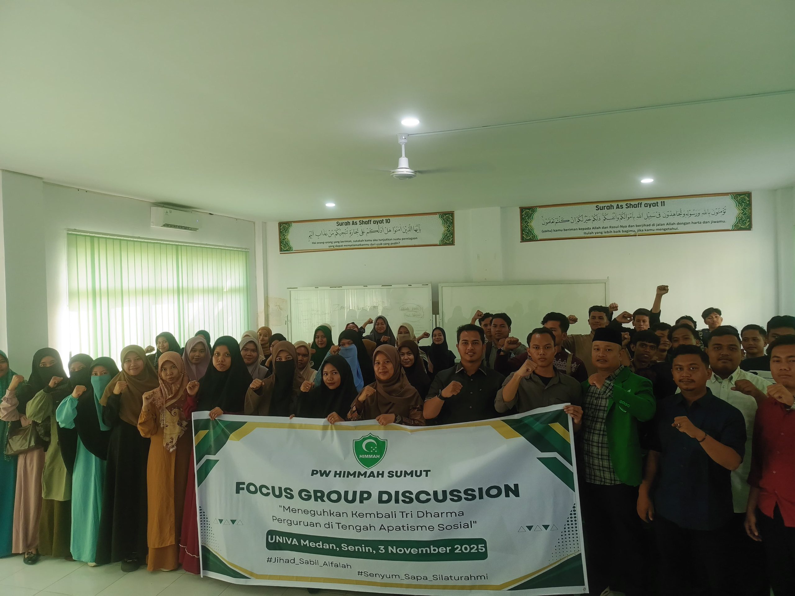 Youbenews.com MEDAN — Pimpinan Wilayah Himpunan Mahasiswa Al Washliyah (PW HIMMAH Sumatera Utara) menggelar kegiatan Focus Group Discussion (FGD) bertema “Meneguhkan Kembali Tri Dharma Perguruan di Tengah Apatisme Sosial”, bertempat di Kampus Universitas Al Washliyah (UNIVA) Medan, Senin (3/11).
