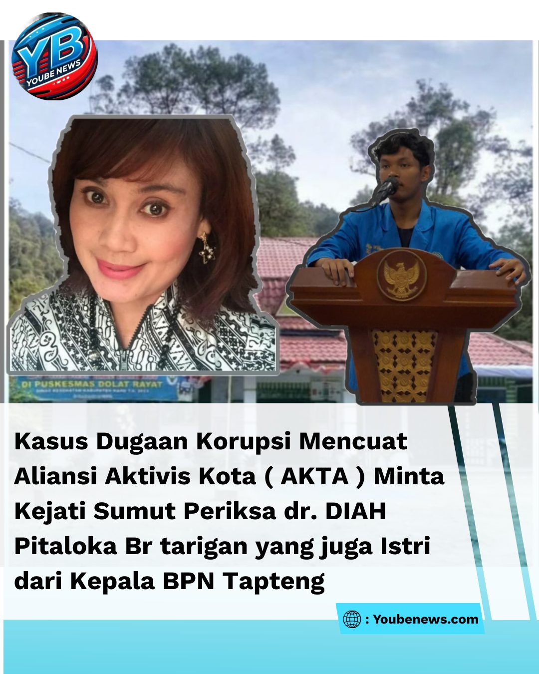 Kasus Dugaan Korupsi Mencuat Aliansi aktivis Kota ( AKTA ) Minta kejati Sumut periksa dr. DIAH pitaloka Br tarigan yang juga Istri dari Kepala BPN Tapteng